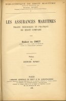 Titre complet : Les Assurances Maritimes - Traité Théorique et Pratique de Droit Comparé Auteur : Robert De SMET Langue : Français Éditeur : LGDJ Format : relié - 960 pages ISBN : Dimensions (en cm) : 15 x 24 cm Prix : Occasion uniquement
