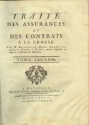 Titre complet : Traité des Assurances et des Contrats à la Grosse Tome II Auteur : Balthazard-Marie EMERIGON Langue : Français Éditeur : Jean Mossy (1783) Format : relié - 684 pages ISBN : Dimensions (en cm) : 20 x 25 cm Prix : Occasion uniquement