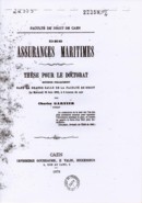 Titre complet : Des Assurances Maritimes - Thèse pour le Doctorat Auteur : Charles Garnier Langue : Français Éditeur : Goussiaume, E Valin, Caen 1878 Format : Relié - 254 pages ISBN : Dimensions (en cm) : 14 X 21 Prix : Occasion uniquement (Voir le Site du SUDOC pour un PEB)