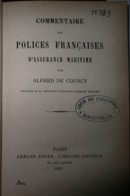 Titre complet : Commentaires des Polices Françaises d'Assurances Maritimes Auteur : Alfred De Courcy Langue : Français Éditeur : Armand Anger, Paris 1874 Format : Relié - 323 pages ISBN : Dimensions (en cm) : 14 X 21 Prix : Occasion uniquement (Voir Catalogue de la Cour de Cassation)