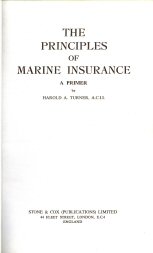 Titre complet : The Principles of Marine Insurance Auteur : Harold Turner Langue : Anglais Éditeur : Stone & Fox (1979° Format : Relié - 227 pages ISBN : Dimensions (en cm) : 14 X 21 Prix : Occasion uniquement