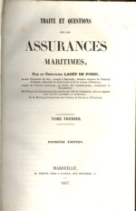 Titre complet : Traités et Questions sur les Assurances Maritimes Tome I Auteur : Chevalier LAGET DE PODIO Langue : Français Éditeur : Auteur (1847) Format : Relié - 480 pages ISBN : Dimensions (en cm) : 14 X 22 cm Prix : Occasion uniquement