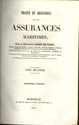 Titre complet : Commentaires des principales Polices d'Assurances Maritimes Usitées en France (Deux tomes) Auteur : Charles Lemonnier Langue : Français Éditeur : Videcocq, Paris 1843 Format : Relié - (367 et 677 pages) ISBN : Dimensions (en cm) : 14 X 21 Prix : Occasion uniquement (Voir sur le site de la bibliothèque Mansutti)
