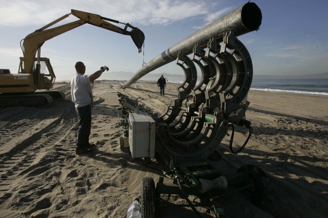 ENSENADA – Over the past two months, they've pulled at its bow, drilled holes in its hull, used cranes and helicopters to lighten its load. But the APL Panama, an 874-foot container ship, still clings to the sandy beach where it has sat since Christmas Day. Now salvage crews are preparing a new tactic: creating a channel alongside the stranded ship with a specialized dredger vessel, the Francesco di Giorgio. The channel would be “as close as possible to the container ship in order to tow it via the canal to deeper waters,” said Adam Van Cauwenberghe, a regional manager in Mexico City for the Jan de Nul Group, the dredger's Belgian owners. With the Francesco di Giorgio's arrival expected today, salvage crews are hoping to write the final chapter of the long-running saga that began when the APL Panama ran aground in shallow waters 1½ miles from Ensenada's port. The ship's fate has been followed closely around the world, from factories in Mexico, to suppliers in Asia, to the vessel's owners in Germany, and to London-based maritime insurance clubs. Repeated attempts to move the ship off the beach with tugboats and a barge equipped with powerful hydraulic pullers have failed. The bow has been moved 50 degrees toward open water, but not far enough to float the ship, Capt. José Luis Ríos Hernández, Ensenada's harbor master, said this week. Another major pulling effort is expected Monday morning. The ship's position, parallel to shore, has made for an especially challenging scenario, Ríos said, and the vessel is now hemmed in by sand piled as high as 16 feet on its starboard side. An attempt last month to blow away the sand with a giant underwater pipe failed when the pipe broke in the surf. Earlier this month, salvage teams tried a different tack, drilling 200 small holes near the bow into the hull's starboard side, and blowing high-pressure air through them to disperse the sand. The latest sand-removal plans involve the dredger vessel, which is 313 feet long and is designed to operate in shallow water. Named for the 15th century Italian artist Francesco di Giorgio, it has been sailing from the Nicaraguan port of Corinth, where it was doing maintenance work on a navigational channel. As they work to remove the sand, salvage crews also have been lightening the APL Panama's load. Titan Maritime LLC, the Florida-based company leading the salvage efforts, has been lifting off containers with a Sikorsky Sky Crane helicopter and a giant crawler crane, perched at the end of a temporary jetty, along with two smaller cranes on board the ship. Victor Manuel Celis Dueñas, customs director for Ensenada's port, said the crews are hoping to remove 1,200 of the 1,800 containers originally on board. By Wednesday, the APL Panama's owners reported that more than 700 containers weighing more than 10,000 tons had been removed, about a third of the original cargo weight. Cargo owners whose containers are off the vessel are being encouraged to take them away, after posting a bond with the salvage company. Some are sending their own trucks to pick up the containers, while others are loading them onto other container ships. The strain of the past several weeks has caused some damage to the APL Panama. But Titan Maritime representatives have been telling local officials that the vessel is essentially in good shape. Human error on the part of the captain apparently led to the vessel's grounding. Testimony of the captain and first mate indicate that the vessel violated port rules by entering restricted waters without a port pilot on board to guide it. The APL Panama's grounding off a residential neighborhood has been of great local interest, initially drawing thousands of spectators a day to Playa Conalep, a broad beach off a residential neighborhood. But the area has been roped off, and the crowds have thinned considerably