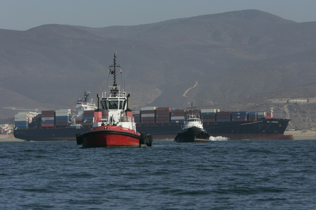 The 25 December 2005, while she was trying to enter the port of Ensenda, the APL PANAMA grounded on the beach. At this time (one month after the casualty), the ship is still aground. The master tried to enter the port without pilot.
