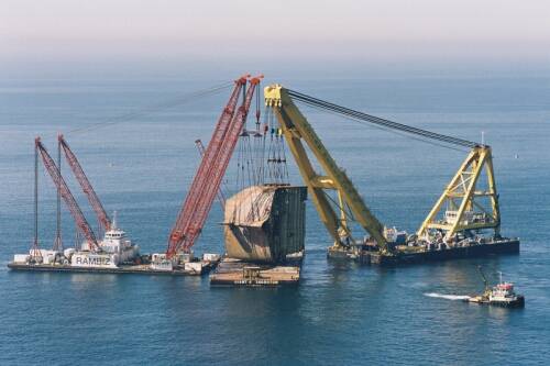 Le début des opérations de découpe est prévue pour début juillet et le relevage d’un premier tronçon est envisagé pour la mi-juillet. Si les conditions météorologiques continuent à être favorables, l’achèvement du chantier pourra avoir lieu pour la fin septembre ou le début du mois d’octobre compte tenu du rythme actuel des travaux.